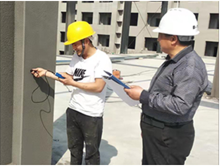 4、工程竣工后不能只进行涂层厚度的测量,还应当用目视法检测涂层颜色及漏涂和裂缝情况,用0.75~1kg榔头轻击涂层检测其强度等,用1m直尺检测涂层平整度。涂层应当平整,无明显凹陷,粘结牢固,无粉化、松散和浮浆,乳突已剔除,无漏涂、脱粉、明显裂缝等。