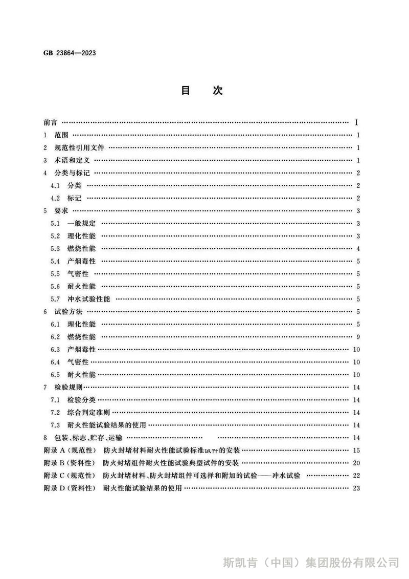 防火封堵材料新标准GB 23864-2023 将于2024年7月1日实行