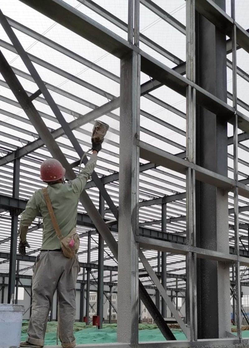 钢结构防火涂料是施涂于建(构)筑物钢结构表面,能形成耐火隔热保护层以提高钢结构耐火极限的涂料。